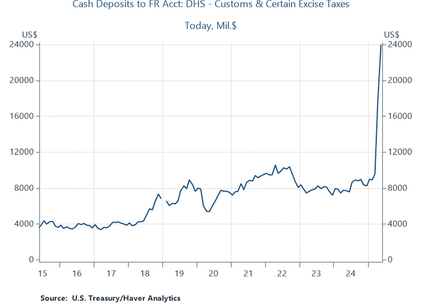 I’ve shown this figure before—monthly revenue flows from the tariffs—which constitute quite a significant tax increase. In fact, they’ve tripled!