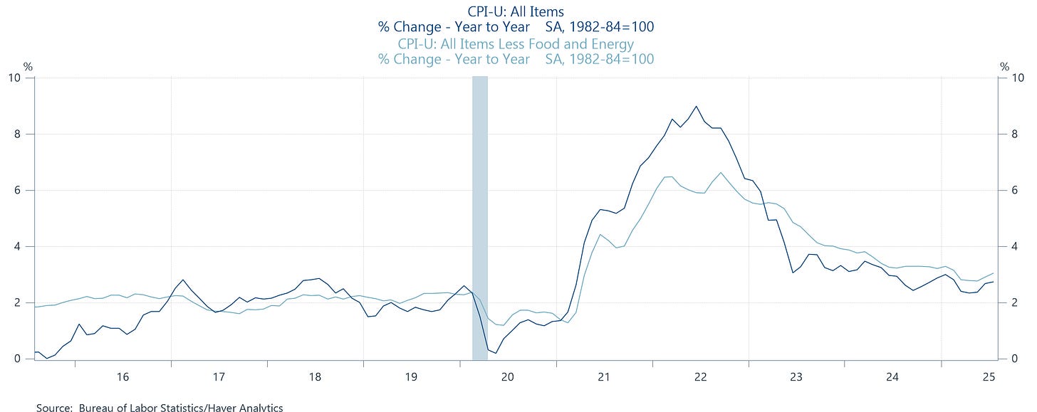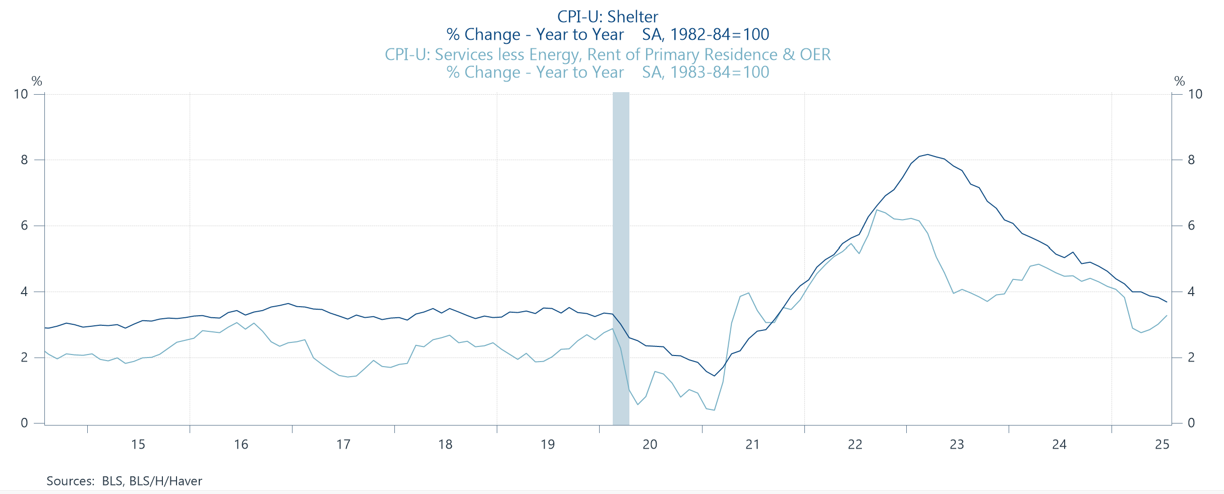 —You can see tariff effects fairly clearly in this report, but let’s not forget that imported goods are but 11% of US GDP, so no one should expect tariffs to be blasting the roof off of inflation. A more rational expectation would be that goods will see some price pressures, those pressures could spill over into other sectors, and in a sweeping-tariff environment, getting back to the Fed’s target will be harder than would have been the case pre-trade war.