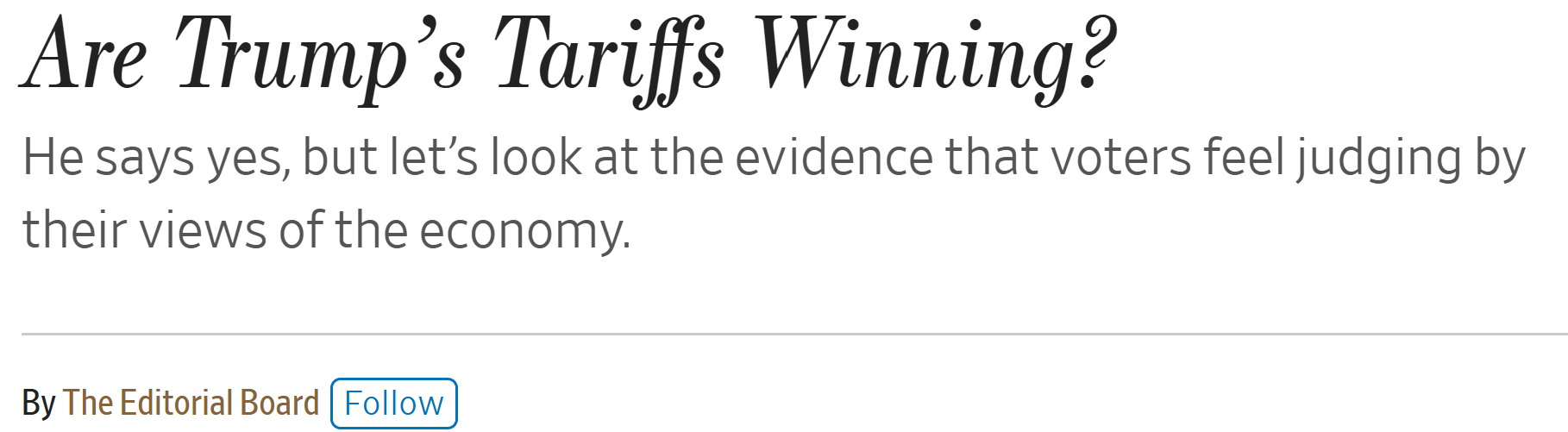 But unless his argument is fact-based and substantive, that’s ridiculous. The WSJ’s criticism of Trump’s tariffs has been wholly fact-driven—they’re consistently done great work on this, and I say that as someone whose ideology differs sharply from that of this ed board. If they say 2+2=4, nobody, not even the president, gets to pushback with 2+2=5.