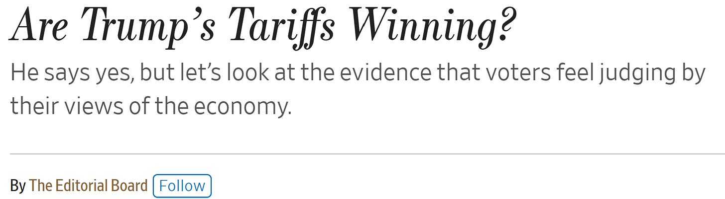 A few days ago the Wall St. Journal published an oped by President Trump wherein he argued how great the US economy is on his watch and why tariffs are the main reason for that greatness. It’s a steaming mess of an argument, a firehose of falsehoods, though the one upside is that I haven’t seen it referenced anywhere. It sunk like a stone under the weight of its lies.