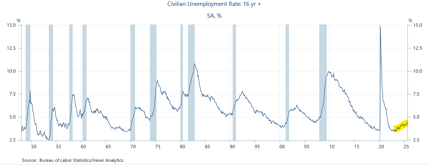 We in the econ-punditry (along with Fed chairs and govs) often say some version of “Yes, the unemployment has gone up but it’s still very low.” But, at 4.4% when last seen in September, is it?