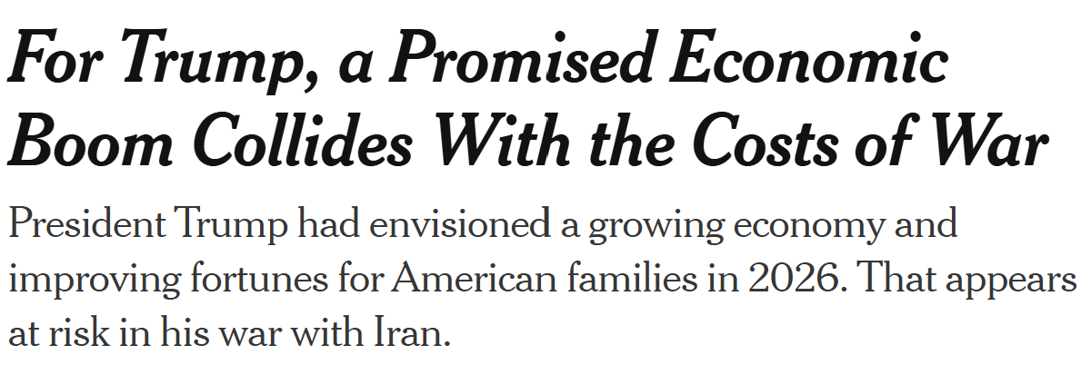 But for regular folks, these war economics hurt, and that’s on top of the existing hurt they’ve been experiencing in the pre-war baseline. If there’s any upside to this, it’s that it should now be clearer than ever that this president and his lackies have zero interest in their interests.